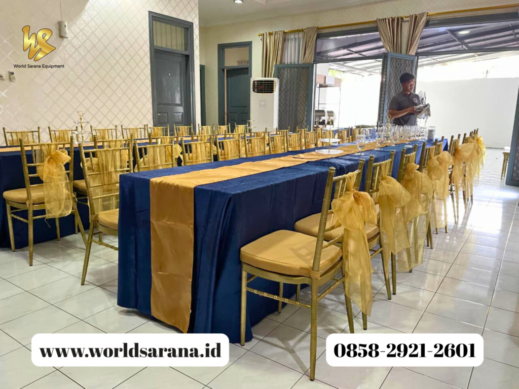 Percantik acaramu dengan sentuhan elgan dari kursi tiffany world sarana. Kami siap menghadirkan susana yang mewah dan berkelas di setiap momen spesialmu.