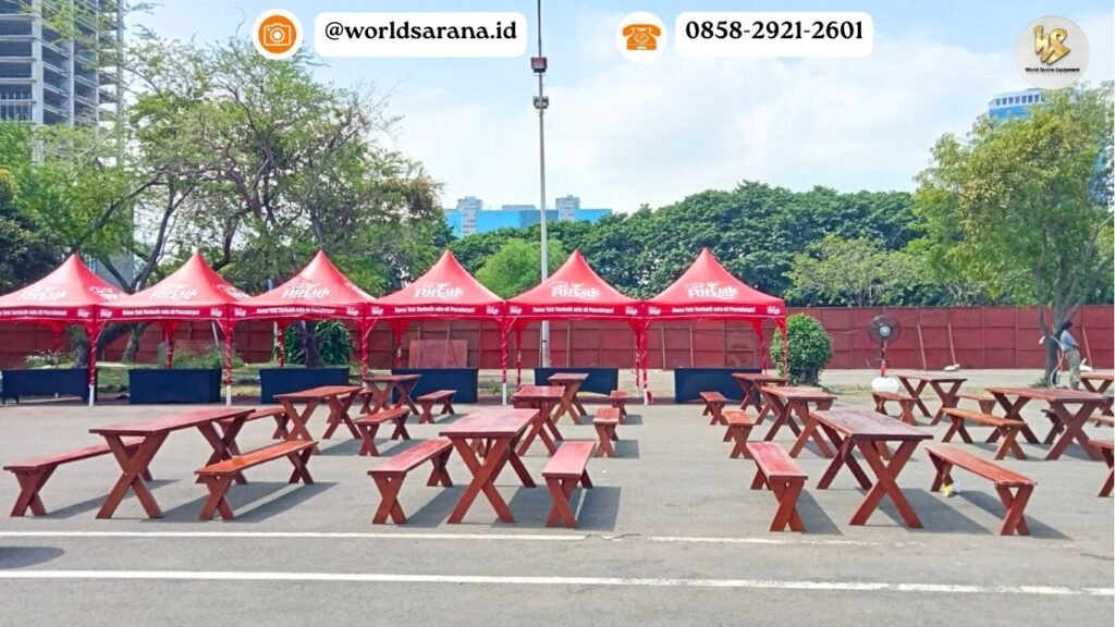 Jika Anda berencana mengadakan acara di luar ruangan di Jakarta, Worldsarana menawarkan layanan sewa meja taman Xtra Jakarta. Dengan kualitas meja yang terjamin, desain modern, dan layanan profesional, Worldsarana siap menyediakan berbagai kebutuhan acara, mulai dari pesta pernikahan, pertemuan bisnis, hingga acara keluarga besar.