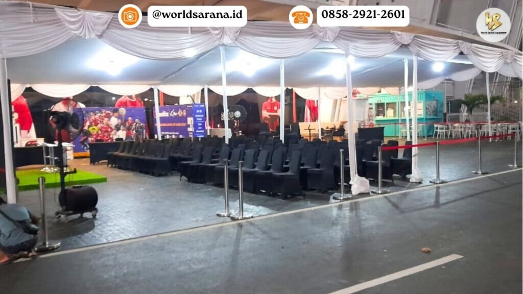 WORLDSARANA pusat sewa tenda plafon Jakut – Memilih tenda untuk acara spesial adalah salah satu hal yang harus dipersiapkan dengan baik. Tenda plafon sangat mampu menciptakan suasana yang mewah, nyaman, dan berkelas. Tidak mengherankan bahwa tenda plafon digunakan untuk banyak acara penting, seperti pernikahan, hajatan, pertemuan perusahaan, hingga acara kenegaraan, agar semuanya berjalan lancar dan meninggalkan kesan yang mendalam.