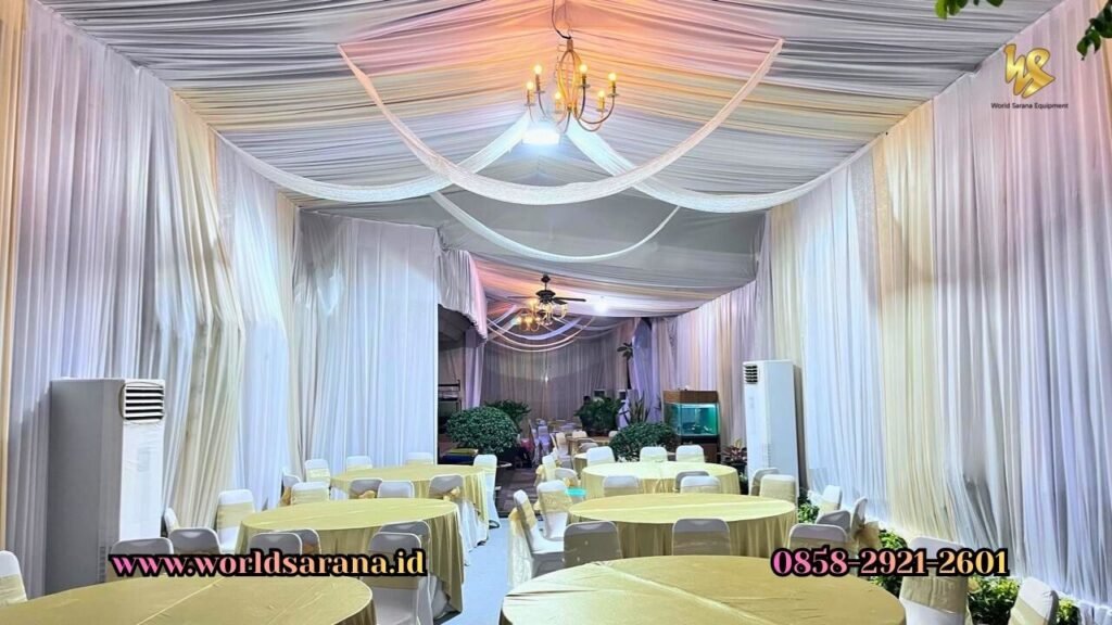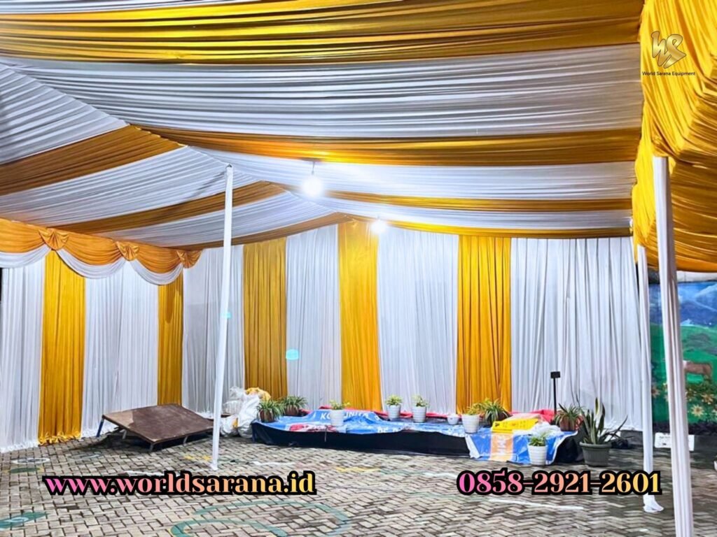 Selain itu tenda serut juga bisa di gunakan untuk tend wedding dengan dekorasi lampu mewah dan kain juntai. World sarana menyediakan sewa paket tenda murah dan mewah KLIK Disini Promonya